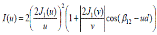 Сопоставим величину контраста, получаемую по предлагаемому способу и контраст интерференционной картины в интерферометре Юнга. В интерферометре Юнга степень когерентности поля излучения оценивают по контрасту интерференционной картины, который, как правило, определяют в точке поля. Если интенсивности интерферирующих пучков равны, то степень когерентности поля излучения равна контрасту интерференционной картины (рис. 4.2). Распределение интенсивности при дифракции частично когерентного излучения на двух круглых отверстиях радиуса a