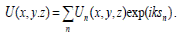 sn – эйконал вдоль n – го луча. Un(x,y,z) – комплексный амплитудный коэффициент, называемый также коэффициентом дифракции. Таким образом, алгоритм решения дифракционной задачи по ГТД сводится к определению положения постулированных источников дифракционных волн и последующему сложению комплексных амплитуд этих волн в точке наблюдения. Фактически это означает, что дифракционная задача сводится к интерференционной и формула для интенсивности I(Q) = U(Q)⋅U∗(Q) совпадает с интерференционной формулой Юнга