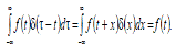 которая, очевидно, не имеет смысла в рамках классического анализа, но справедлива в смысле теории обобщенных функций. Рассмотрим некоторые свойства δ-функции. Если f(t) не имеет разрывов в точке t, то