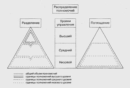 В результате складывается иерархия полномочий — это распределение полномочий по уровням управления и установление юридически закрепленных рангов каждого участника управленческой структуры.
