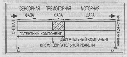 Быстрота двигательных реакций может быть простой и сложной. Простая реакция - это ответ заранее известным движением на заранее известный, но внезапно появляющийся сигнал. Например, старт в беге, скоростная стрельба по силуэтам, бросок набивного мяча от груди или из-за головы по ожидаемому сигналу и пр. Все остальные типы реакций - сложные. В двигательных реакциях различают три фазы: 131 Теория и методика физической культуры 1.Сенсорную - от момента появления сигнала до первых признаков мышечной активности. 2.Премоторную - от появления электрической активности мышц до начала движения. Эта фаза наиболее стабильна и составляет 25-60 мс. 3.Моторную - от начала движения до его завершения. Сенсорная и премоторные фазы образуют латентный (скрытый) компонент реакции, а моторная - двигательный. Рис. 10.1. Компонентный состав времени простой реакции. Из рис. 10.1. видно, что латентный и двигательные компоненты времени реакции имеют на оси времени общий участок (он обозначен штриховкой). Это означает, что в данное время начинают работать несколько параллельных уровней регуляции. В области физического воспитания обычно измеряют общее время реакции, т.е. промежуток времени между моментом (to) появления сигнала и моментом (tn) окончания реагирования на него. Например, моментом ухода со стартовых колодок в беге на короткие дистанции. Сокращение целостного времени простой двигательной реакции в результате тренировки происходит, главным образом, за счет её моторного компонента. Установлено, что перцептивные и двигательные процессы являются относительно независимыми, причем индивидуальные различия времени латентного компонента значительно больше, чем время движения. Латентный период реакции служит информативным показателем состояния ЦНС. Поэтому эта составляющая имеет большое значение при контроле за состоянием организма в процессе занятий физическими упражнениями. Согласно физиологическим представлениям латентное время реакции складывается из пяти составляющих: 1. Появление возбуждения в рецепторе. Раздражитель должен быть воспринят ("выхвачен") органом чувств - глазом, ухом, тактильным чувством, вестибулярным аппаратом. 2. Передача возбуждения по центростремительному нерву в ЦНС. 3. Переход возбуждения по нервным сетям и формирование эффекторного сигнала. 4. Передача возбуждения от ЦНС к мышце. ______________________ Лекция 10 Скоростные способности и методика их развития 5. Возбуждение в мышце и появление в ней механической активности. Время, затрачиваемое на появление возбуждения в рецепторе во многом зависит от физической природы раздражителя, его интенсивности и особенностей воспринимающего рецептора. Так, время восприятия звуковых и тактильных раздражителей намного короче времени рецепции зрительного раздражителя, поскольку в последнем случае значительную долю времени занимает фотохимический процесс, преобразующий световую энергию в нервный импульс. Время передачи возбуждения по центростремительному нерву в ЦНС зависит от подвижности нервных процессов. Считается, что этот фактор в наибольшей степени изменяется под влиянием упражнений. Основная доля латентного времени реакции уходит на "центральную задержку" - время, необходимое для переработки поступающего сигнала и формирования эффекторной импульсации в ЦНС, от ее укорочения, очеви