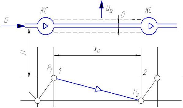 Рисунок 1.1 – Принципиальная схема газопровода Исходные данные: D =– диаметр трубопровода;