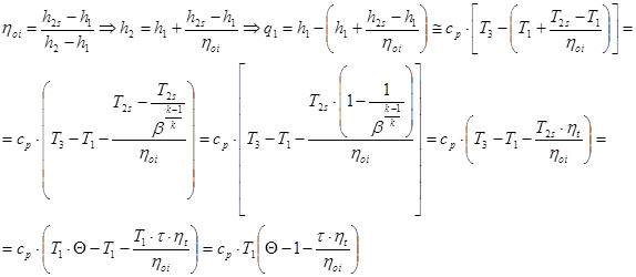 3.2.4. Термический КПД обратимого цикла ГТУ (цикл Брайтона)