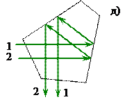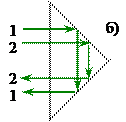 ۰ пентапризма (рис. д), поскольку лучи падают на грани под углом, меньше предельного, то для полного отражения эти грани посеребрены.