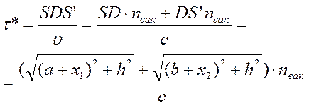 где a – расстояние от оптического центра O до источника S, b – расстояние от оптического центра O до изображения S'. Световой луч проходит траекторию SOS' время