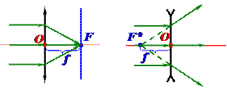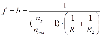 Сравнивая (6) и (7) видно, что фокусные расстояния одинаковые, т. е. фокусы находятся на одном и том же расстоянии по обе стороны линзы