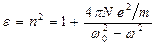 То же соотношение приближенно справедливо для изотропных газов и жидкостей, построенных из изотропных молекул, если под Будем предполагать, что все молекулы одинаковы и каждая из них содержит только один оптический электрон. Кроме того, пренебрежем затуханием, предполагая, что частота ω далека от полосы поглощения. В этих предположениях все, что нужно сделать, — это заменить в уравнении (5.7)