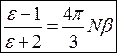 Если N — число атомов в единице объема, то вектор поляризации среды будет P=Np=NβE, индукция D=E+4 π P= ε E, где