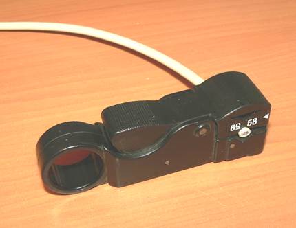 | Внимание! В устройстве для зачистки кабеля используются острые ножи. Поэтому не пытайтесь использовать это устройство для зачистки чего-либо другого, кроме «тонкого» коаксиального кабеля, и ни в коем случае не пытайтесь зажимать в этом устройстве, например, палец: такие действия могут привести к серьезной травме.