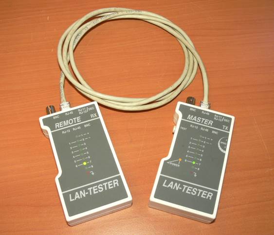 Рис. 4.10. Проверка качества заделки коннекторов RJ-45 с помощью специального тестера