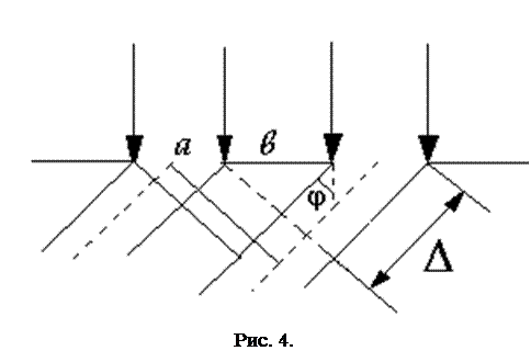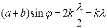 Итак, результат наложения друг на друга лучей, идущих от щели под углом к нормали, зависит от разности хода между крайними лучами. Для углов , удовлетворяющих условию