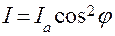 Для обнаружения линейно-поляризованного света анализатор располагают так, чтобы плоскость анализатора была параллельна плоскости поляризации света. В этом случае, если свет полностью поляризован, интенсивность проходящего света будет равна нулю. Если повернуть анализатор на угол Рассмотрим случай произвольного угла между плоскостями поляризатора и анализатора более подробно (рис.1). Обозначим амплитуду электрического вектора, прошедшего поляризатор через