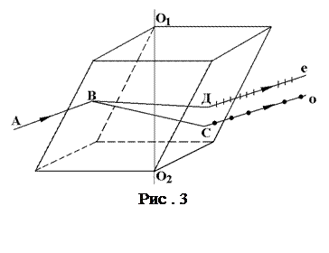 В общем случае отраженный свет не будет линейно поляризованным. Поэтому для увеличения степени поляризации, (см. формулу (1)), раньше использовались специальные стопы Столетова или эшелон Майкельсона. В настоящее время данный метод получения поляризации света не используется на практике. Следующий способ получения поляризованных лучей основан на явлении двойного лучепреломления в анизотропных средах. Анизотропные вещества имеют в разных направлениях различные свойства. Примером такой среды является исландский шпат, представляющий собой разновидность углекислого кальция CaCO3 и встречающийся как минерал в виде кристаллов гексагональной системы. Такой кристалл имеет форму косоугольного параллелепипеда, все грани которого - параллелограммы с тупыми углами в 101°52¢ и острыми - 78°08¢. Кристаллу исландского шпата легко придать форму ромбоэдра – многоугольника, ограниченного шестью ромбами с указанными острыми и тупыми естественными углами (рис. 3). Из восьми углов есть два