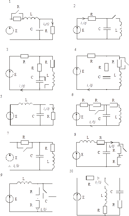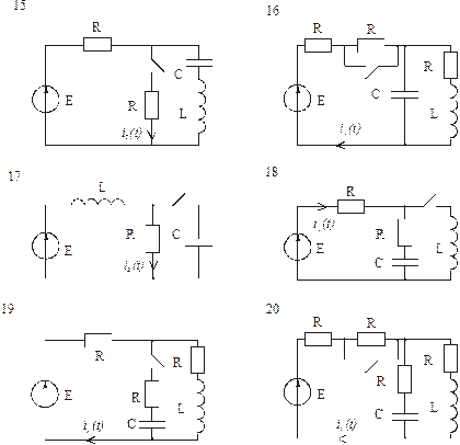 1. Складіть операторну схему заміщення для кола рис.1 Обов’язкове перше питання для кожного. Якщо відповідь невірна, далі розмови не буде. 2. Що розуміють під перехідним електромагнітним процесом? 3. Які умови виникнення перехідних процесів? 4. Що таке початкові умови? 5. Що таке незалежні початкові умови і як їх визначають? 6. Що таке залежні початкові умови і як їх визначають? 7. Що таке примушена (усталена) складова перехідної величини і як їх визначають? 8. Що таке вільна складова перехідної величини? 9. Дайте визначення сталої часу τ кола й тривалості перехідного процесу. 10. Від чого залежить тривалість перехідного процесу в електричному колі? 11. Сформулюйте та запишіть перший класичний закон комутації. 12. Сформулюйте та запишіть другий класичний закон комутації. 13. Сформулюйте та запишіть перший узагальнений закон комутації. 14. Сформулюйте та запишіть другий узагальнений закон комутації. 15. Загальний порядок розрахунку перехідного процесу класичним методом. 16. Правила складання характеристичного рівняння кола. Складіть характеристичне рівняння для кола рис.1. 17. Корені дійсні різні від’ємні (2 корені). Запишіть загальний вигляд вільної складової перехідного струму. 18. Корені кратні (2 корені). Запишіть загальний вигляд вільної складової перехідного струму. 19. Корені комплексно-спряжені (2 корені). Запишіть загальний вигляд вільної складової перехідного струму. 20. Корені дійсні різні від’ємні (2 корені). Запишіть систему рівнянь для визначення постійних інтегрування. 21. Корені кратні (2 корені). Запишіть систему рівнянь для визначення постійних інтегрування. 22. Корені комплексно-спряжені (2 корені). Запишіть систему рівнянь для визначення постійних інтегрування. 23. Загальний порядок розрахунку перехідного процесу операторним методом. 24. Операторні схеми заміщення та зображення резистивного індуктивного та ємнісного елементів а також джерел постійної напруги та постійного струму (буде задано вибірково). 25. Алгоритм переходу від зображення до оригіналу. 26. Запишіть формулу переходу до оригіналу вільної складової. Корені знаменника зображення дійсні різні від’ємні (2 корені). 27. Запишіть загальний вигляд вільної складової перехідної величини. Корені характеристичного рівняння кола кратні (2 корені). 28. Запишіть загальний вигляд вільної складової перехідної величини. Корені характеристичного рівняння кола комплексно-спряжені (2 корені). 29. Запишіть формулу переходу до оригіналу перехідної величини. Корені знаменника зображення дійсні різні від’ємні та нульовий корінь (3 корені). 30. Запишіть формулу переходу до оригіналу перехідної величини. Корені знаменника зображення комплексно-спряжені та нульовий корінь (3 корені). 31. Запишіть формулу переходу до оригіналу перехідної величини. Корені знаменника зображення кратні та нульовий корінь (3 корені). 32. Загальний порядок розрахунку перехідного процесу методом інтеграла Дюамеля 33. Що таке перехідна характеристика за струмом? 34. Що таке перехідна характеристика за напругою? 35. Що таке перехідна провідність? 36. Що таке перехідний опір? 37. Загальні формули інтеграла Дюамеля (буде задано вибірково, 1 з 4 формул). 38. Алгоритм складання розрахункових формул інтеграла Дюамеля.