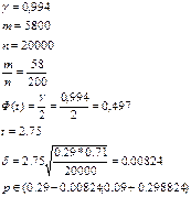 152. Выборочно обследовали качество кирпича. Из проб в случаях кирпич оказался бракованным. В каких пределах заключается доля брака для всей продукции, если результат гарантируется с надежностью ?