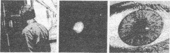 По надежности и затратам времени метод идентификации по узорам сетчатки глаз сопоставим с дактилоскопическим методом. С помощью высококачественной телекамеры осуществляется сканирование сетчатки глаза. Фиксируется угловое распределение кровеносных сосудов на поверхности сетчатки относительно слепого пятна глаза и других признаков. Всего насчитывается около 250 признаков (рис.21)