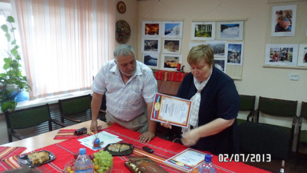 Руководитель Болгарской воскресной школы Элеонора Дударь вручила Ангелу Христову Дипломы участников Международного конкурса детского литературно-художественного творчества «Ступени», который ежегодно проходит в Уфе. Среди участников конкурса – воспитанники Литературного содружества «Сладкодумцы» из Шумена и внуки гостя Болгарского культурного центра – Анна Христова и Виктор Христов. Ангел Христов горячо поблагодарил собравшихся за столь высокий прием. Он назвал данный момент волнительным для себя и одновременно удивительным.