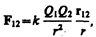где F 12 — сила, действующая на заряд Q 1 со стороны заряда Q 2, r 12 — радиус-вектор, соединяющий заряд Q 2 с зарядом Q 1, r = | r 12| (рис. 117). На заряд Q 2 со стороны заряда Q 1 действует сила F 21 = – F 12. В СИ коэффициент пропорциональности равен