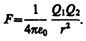 где k — коэффициент пропорциональности, зависящий от выбора системы единиц. Сила F направлена по прямой, соединяющей взаимодействующие заряды, т. е. является центральной, и соответствует притяжению (F <0) в случае разноименных зарядов и отталкиванию (F >0) в случае одноименных зарядов. Эта сила называется кулоновской силой. В векторной форме закон Кулона имеет вид