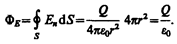 Таким образом, для поверхности любой формы, если она замкнута и заключает в себя точечный заряд Q, поток вектора Е будет равен Q/ e0, т. е.