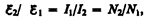 где знак минус показывает, что э.д.с. в первичной и вторичной обмотках противоположны по фазе. Отношение числа витков N 2 /N 1, показывающее, во сколько раз э.д.с. во вторичной обмотке трансформатора больше (или меньше), чем в первичной, называется коэффициентом трансформации. Пренебрегая потерями энергии, которые в современных трансформаторах не превышают 2% и связаны в основном с выделением в обмотках джоулевой теплоты и появлением вихревых токов, и применяя закон сохранения энергии, можем записать, что мощности тока в обеих обмотках трансформатора практически одинаковы: