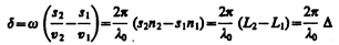 (учли, что w / с = 2p n / с = 2p/ l 0, где l 0 — длина волны в вакууме). Произведение геометрической длины s пути световой волны в данной среде на показатель n преломления этой среды называется оптической длиной пути L, a D = L 2 – L 1 — разность оптических длин проходимых волнами путей — называется оптической разностью хода. Если оптическая разность хода равна целому числу длин волн в вакууме