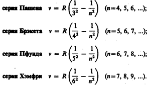 Все приведенные выше серии в спектре атома водорода могут быть описаны одной формулой, называемой обобщенном формулой Бальмера: