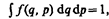 Здесь dW— вероятность того, что точка фазового пространства попадет в элемент фазового объема d q d p, расположенного вблизи данной точки q, р. Иными словами, dW представляет собой вероятность того, что система находится в состоянии, в котором ее координаты и импульсы, заключены в интервале q, q+dq и р, p+dp. Согласно формуле (234.1), функция распределения есть не что иное, как плотность вероятности определенного состояния системы. Поэтому она должна быть нормирована на единицу: