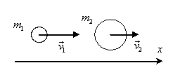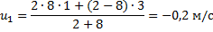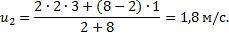 Пример 2. Шар массой m1=2 кг движется со скоростью v1=3 м/с и нагоняет шар массой m2=8 кг, движущийся со скоростью v2=1 м/с (рис.4). Считая удар центральным и абсолютно упругим, найти скорости u1 и u2 шаров после удара.