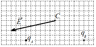 Направлению вектора напряженности электрического поля этих зарядов в точке A соответствует стрелка