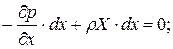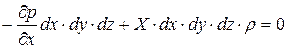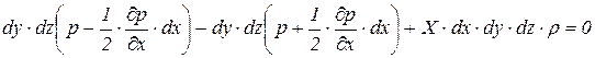 Составим уравнение равновесия исследуемого нами жидкого объема относительно оси X: