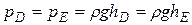 Тогда эпюру избыточного гидростатического давления можно изобразить, рассчитав избыточные давления в точках В, С, D, Е.
