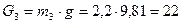 Здесь s – площадь днища поршня, которая найдена была ранее при силовом расчете структурной группы звеньев 4-5. Эта сила является силой движущей, приложена к ползуну 5 и направлена вертикально вниз (см. рис. 6.11). Вычисляем силы тяжести звеньев 2 и 3: