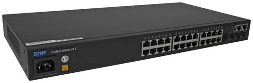Рисунок 30 – Коммутатор SNR-S2990G-24T В результате анализа был сделан вывод, что оба коммутатора по функционалу отвечают современным требованиям. Однако, при визуальном осмотре можно отметить, что корпус SNR сделан из толстого, прочного металла, а D-link сделан из тонкой стали, что делает его более подверженным к внешним воздействиям за счет меньшей прочности. Также разъем питания SNR расположен спереди, что, несомненно, облегчает монтаж. Платы вышеназванных коммутаторов представлены на рисунках 31 и 32.
