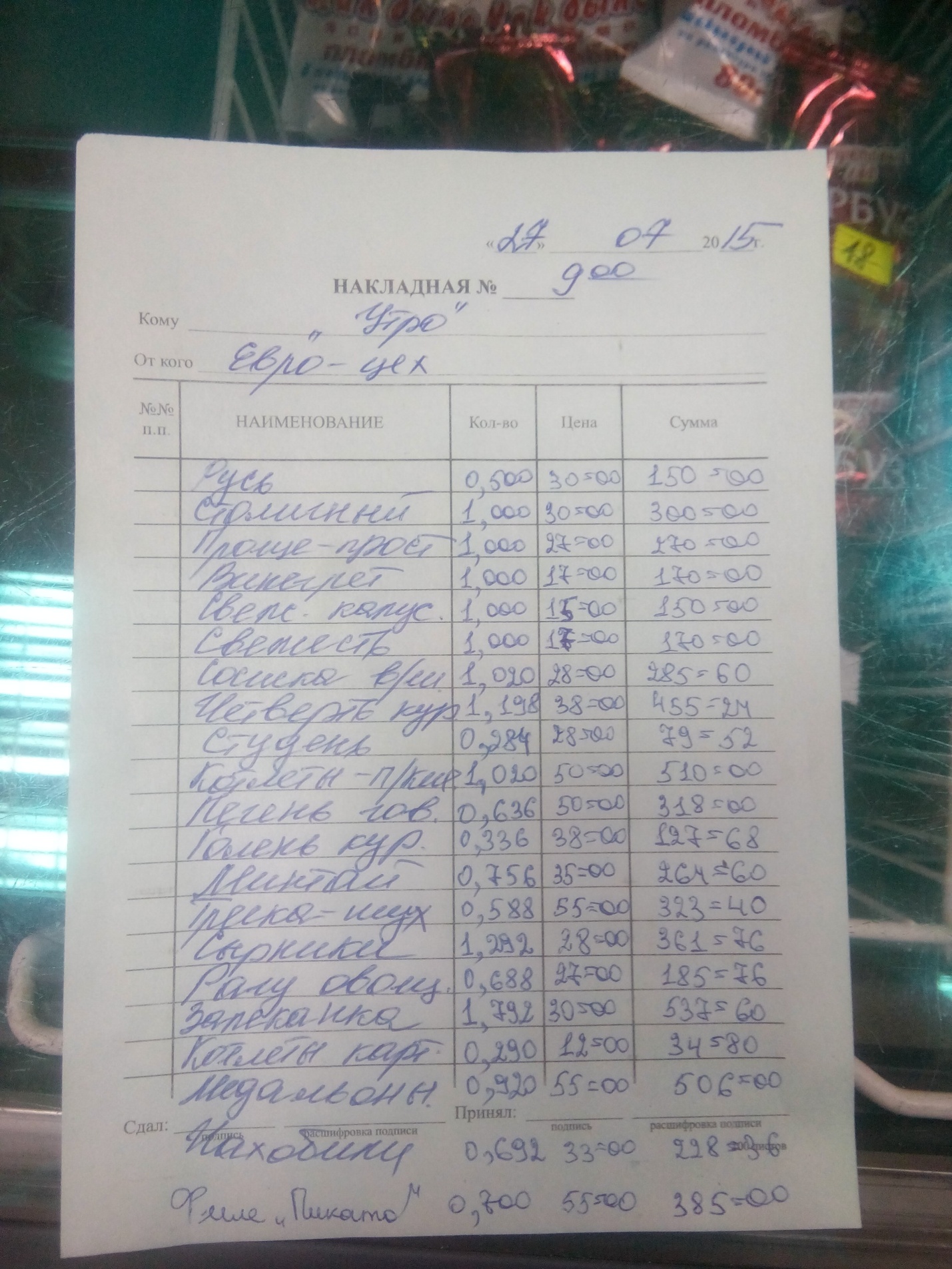 9. Магазин «Дельта» ул. Первомайская 30а личный выход 28.07.15 Ивашов И.Ю. - продукция с истекшим сроком годности (пресервы кальмар – 1 сутки!) – снято с реализации – смотри фото