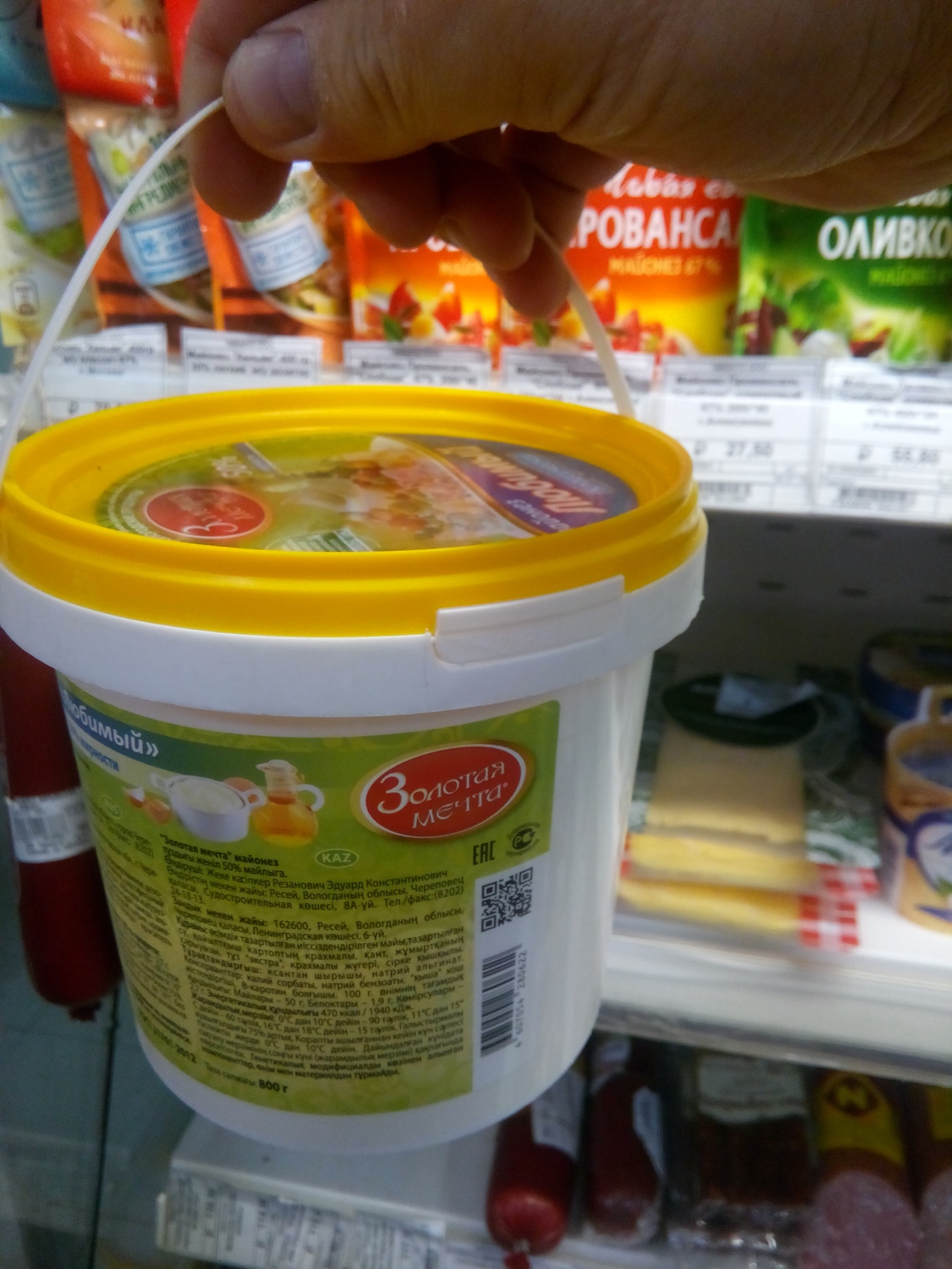 - продукция с истекшим сроком годности (майонез – 3 шт – общий вес 2.400 – «просрочка» составляет от 8 - 14 суток!!!) – снято с реализации – смотри фото