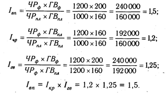 В нашем примере объем валовой продукции можно представить в виде произведения численности рабочих и их среднегодовой выработки. Следовательно, индекс валовой продукции 1вп будет равен произведению индекса численности рабочих lчр и индекса среднегодовой выработки 1гв: