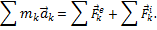 Последняя сумма по свойству внутренних сил равна нулю. Кроме того,