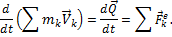Уравнение выражает теорему об изменении количества движения (импульса) системы в дифференциальной форме: производная по времени от количества движения (импульса) системы равна геометрической сумме всех действующих на систему внешних сил. В проекциях на координатные оси будем иметь: