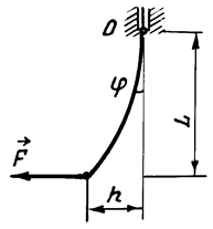 где J – момент инерции пластинки; Для определения момента М рассмотрим деформацию пластинки под действием приложенной к ее свободному концу внешней силы M = - FL. (17) Силу F можно выразить через стрелу прогиба h. При малых деформациях, когда справедлив закон Гука, сила, как показывают расчеты (см [5]) прямо пропорциональна стреле прогиба: