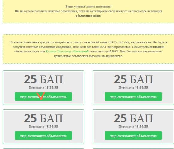 Просмотр активационных объявлений для заработка на PaidVerts