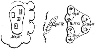 Рухома вогнева зона - це глибока суцільна зона розривів, яка створюється перед фронтом своїх військ, які атакують, і зміщується в глибину по мірі їх просування. Вогонь ведеться одночасно по цілям на трьох і більше рубежах перед фронтом атакуючих танкових і механізованих підрозділів. Крім цього, може вестись вогонь одночасно по рубежам на повітряних розривах. Застосовується при проведенні артилерійської підтримки атаки при прориві підготовленої і розвинутої в інженерному відношенні оборони противника, яка насичена великою кількістю протитанкових засобів (особливо далекобійних), на відкритій місцевості та при наявності достатньої кількості артилерії та боєприпасів. Дивізіон веде вогонь по ділянці, яка по фронту дорівнює величині ділянки прориву батальйону (до 1 км). Умовне найменування груп рубежів - за назвами хижих звірів. Нумерація ділянок на кожному рубежі здійснюється тризначним числом: перша цифра - номер групи рубежів; друга - номер рубежу в групі рубежів; третя — номер ділянки на рубежі. Відстань між рубежами в групі - 150-200 м. Глибина РВгЗ залежить від кількості рубежів, по яким вогонь ведеться одночасно і може складати 400-600 м і більше. Масований вогонь - централізовано спланований і підготовлений вогонь всієї або більшої частини артилерії з'єднання, який ведеться одночасно по одному або кільком важливим об'єктам з завданням їх рішучого ураження в короткі терміни. Кожному вогню надають умовне найменування за назвою планет ("Марс", "Сатурн"). Застосовується з метою нанесення ураження важливим об'єктам головного угрупування противника в районах зосередження та на рубежах розгортання. а) Ураження противника в районах зосередження.