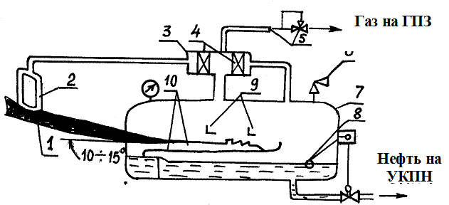 1 - входной трубопровод; 2 - вилка для предварительного отбора газа; 3 - каплеуловитель (сепаратор газа); 4 - жалюзийные насадки; 5 - газопровод с регулятором давления "до себя"; 6 ‑ предохранительный клапан; 7 - корпус сепаратора; 8 - поплавок; 9 - пеногасители; 10 ‑ наклонные полки Date: 2015-08-15; view: 726; Нарушение авторских прав |