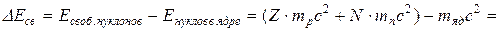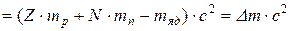 где mяд, кг – масса ядра атома; mp = 1,6726·10–27 кг – масса протона; mn = 1,6749·10–27 кг – масса нейтрона. Учитывая закон взаимосвязи массы и энергии Эйнштейна