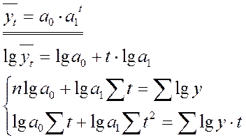 После того как выбор теоретической кривой осуществлен, задача заключается в нахождении параметров функции связи, или тренда, и нахождении теоретических уровней ряда динамики.
