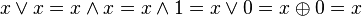 а логический ноль 0 и логическая единица 1 — константы. Так же используются названия · Дизъю́нкт — пропозициональная формула, являющаяся дизъюнкцией одного или более литералов (например · Конъюнкт — пропозициональная формула, являющаяся конъюнкцией одного или более литералов (например Унарная операция отрицания в тексте формул оформляется либо в виде значка перед операндом ( Аксиомы] 1. 2. 3. 4. 5. 6. 7. 8. 9. Логические операции[ Простейший и наиболее широко применяемый пример такой алгебраической системы строится с использованием множества B, состоящего всего из двух элементов: B = { Ложь, Истина } Как правило, в математических выражениях Ложь отождествляется с логическим нулём, а Истина — с логической единицей, а операции отрицания (НЕ), конъюнкции (И) и дизъюнкции (ИЛИ) определяются в привычном нам понимании. Легко показать[ неопределённость ], что на данном множестве B можно задать четыре унарные и шестнадцать бинарных отношений и все они могут быть получены через суперпозицию трёх выбранных операций. Опираясь на этот математический инструментарий, логика высказываний изучает высказывания и предикаты. Также вводятся дополнительные операции, такие какэквиваленция Логика высказываний послужила основным математическим инструментом при создании компьютеров. Она легко преобразуется в битовую логику: истинность высказывания обозначается одним битом (0 — ЛОЖЬ, 1 — ИСТИНА); тогда операция Впоследствии булева алгебра была обобщена от логики высказываний путём введения характерных для логики высказываний аксиом. Это позволило рассматривать, например, логику кубитов, тройственную логику (когда есть три варианта истинности высказывания: «истина», «ложь» и «не определено»), комплексную логику и др. Свойства логических операций 1. Коммутативность: x 2. Идемпотентность: x 3. Ассоциативность: (x 4. Дистрибутивность конъюнкций и дизъюнкции относительно дизъюнкции, конъюнкции и суммы по модулю два соответственно: · · · 5. Законы де Мо́ргана: · · 6. Законы поглощения: · · 7. Другие (1): · · · · · 8. Другие (2): · · · · 9. Другие (3) (Дополнение законов де Мо́ргана): · ·