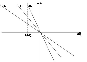 Данное уравнение механической характеристики определяет зависимость скорости вращения от момента на валу двигателя, т.к. в статике вращающий момент равен моменту сопротивления Мс на валу ДПТ, то это уравнение определяет зависимость
