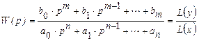Наиболее общей формой динамических характеристик являются дифференциальные уравнения, связывающие величины Х и У и их производные. Когда Х и У связываются линейной зависимостью, дифференциальное уравнение (д.у.) имеет вид: а0×уn+а1×уn-1+…+аn-1×y+аn=b0×Xm+b1×Xm-1+…+bm-1×X+bm. Д.у. может быть представлено и в операторной форме, путем преобразования Лапласса левой и правой частей, которое при нулевых условиях имеет вид: (a0×pn+a1×pn-1+…+an-1×p+an)×h(y) (b0×pm+b1×pm-1+…+bm-1×p+bm)h(x) L(у) и L(х) – изображения входного и выходного сигналов; р – комплексный параметр. Из этого выражения можно определить передаточную функцию канала, равную отношению изображения выходного и входного сигнала при нулевых начальных условиях. Знаменатель передаточной функции приравниваемый к нулю называется характеристическим уравнением. С помощью передаточной функции определяют реакцию канала на тот или иной вид измеряемого входного сигнала.