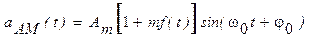 Предположим, что модулированный сигнал задан функцией x(t), тогда при амплитудной модуляции т.е. при воздействии сигнала x(t) на параметр АМ несущего сигнала получается амплидудно-модулируемый сигнал Если амплитудная модуляция осуществляется т.о., что в отсутствии x(t) амплидуда несущего колебания равна нулю, то получается балансная АМ При частотной модуляции в соответствии с измерительным сигналом x(t), изменяется частота несущего сигнала В этом выражении отношение При ФМ по закону модулированного сигнала x(t) изменяется фаза колебания ЧМ и ФМ взаимосвязаны: при ЧМ частота линейно зависит от величины изменения сигнала, и изменение фазы связано с интегральной зависимостью с полезным сигналом. При ФМ имеет место линейная связь между фазой и измерительным сигналом, а частота ФМ-ых колебаний определяется дифференциальной зависимостью от измерительного сигнала. По частотному составу спектры ЧМ и ФМ одинаковы. При ФМ ширина спектра прямопропорциональна как величине, так и частоте входного сигнала. Date: 2015-07-27; view: 2193; Нарушение авторских прав |