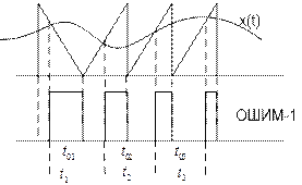 Существует ОШИМ1 и ОШИМ2, и называются они 1-го и 2-го рода. При ОШИМ1 длительность импульсов определяется значениями входного сигнала в момент появления модулированного фронта импульса, при ОШИМ2 длительность импульсов пропорциональна значению входного сигнала в момент соответствующий посылке тактового импульса.